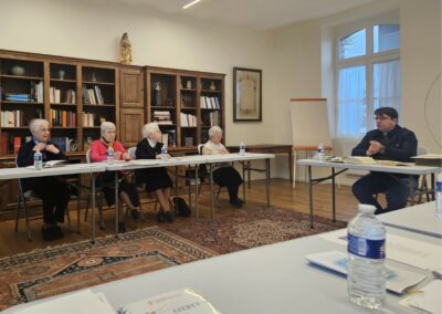 A partir des nouveaux décrets capitulaires et de l’histoire de la fondation de la Congrégation, Richard a développé 4 grands thèmes à méditer et à prier : le silence, l’amitié, la pauvreté, l’appel de Dieu à être une « porte ouverte » pour le monde.